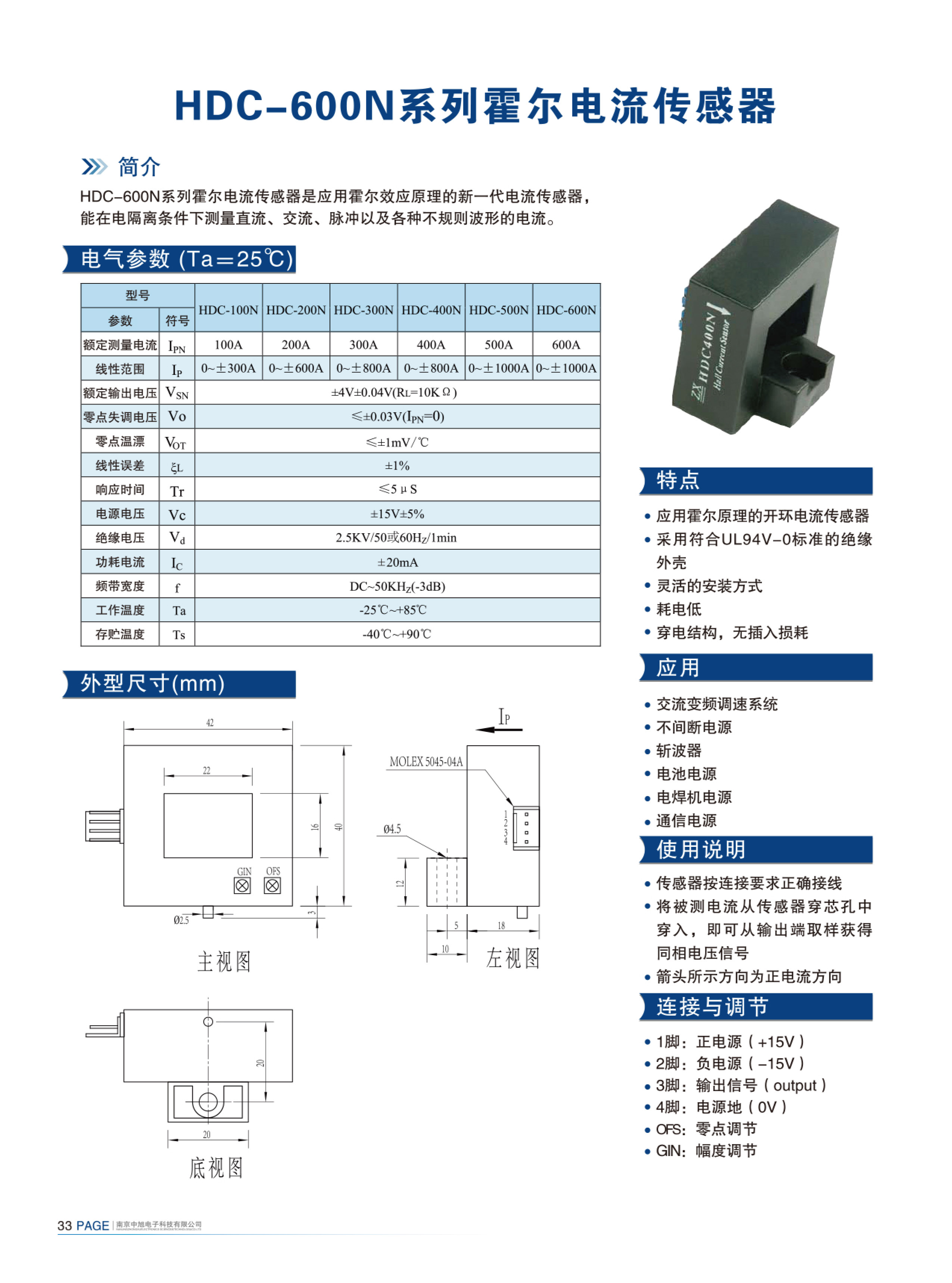 HDC-600N series Hall current sensor is a new generation of current sensor using the principle of Hall effect. It can measure currents of DC, AC, pulse and various irregular waveform under electrical isolation.