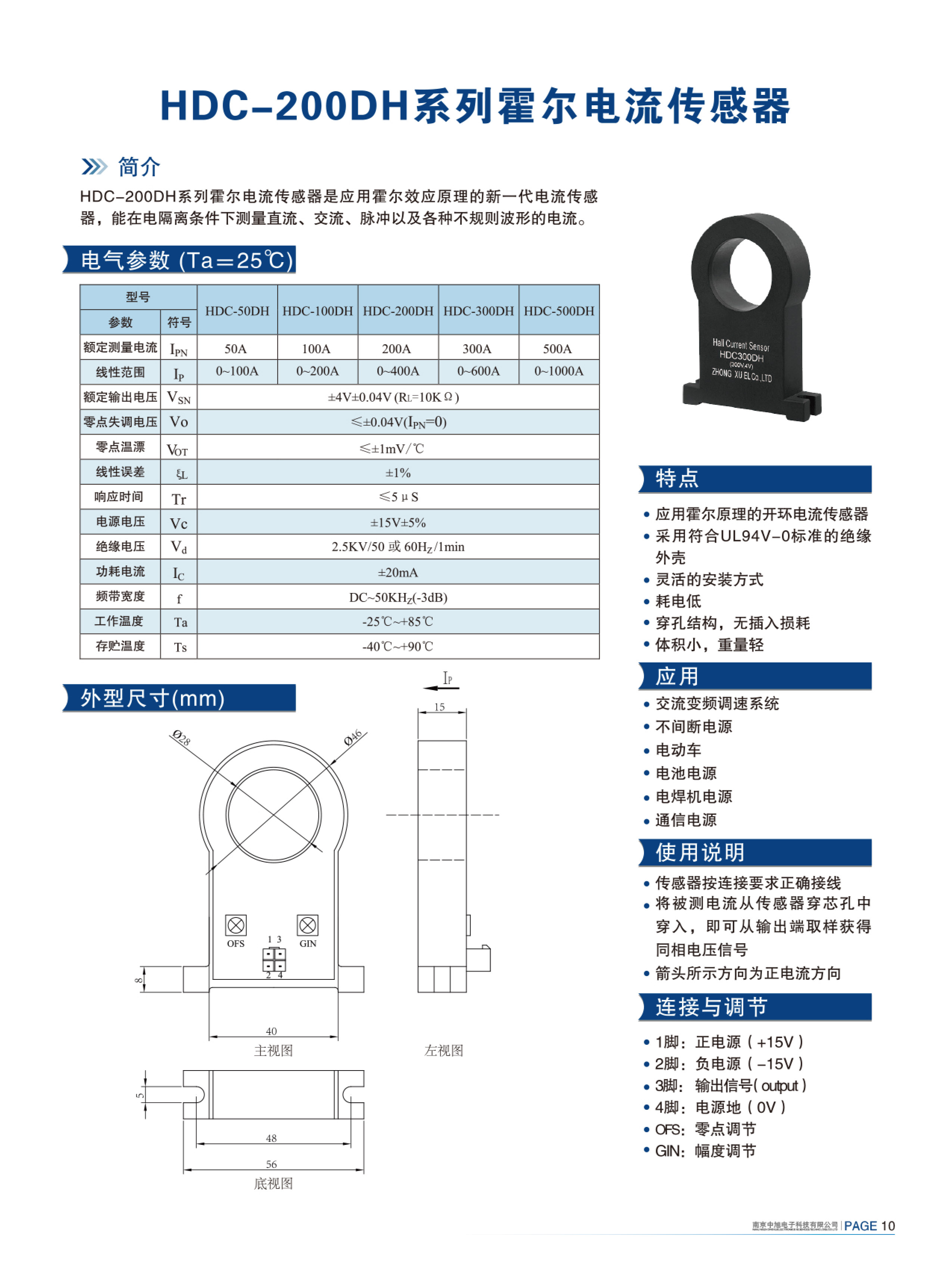 HDC-300DH系列霍爾電流傳感器是應(yīng)用霍爾效應(yīng)原理的新一代電流傳感器,能在電隔離條件下測(cè)量直流、交流、脈沖以及各種不規(guī)則波形的電流。
