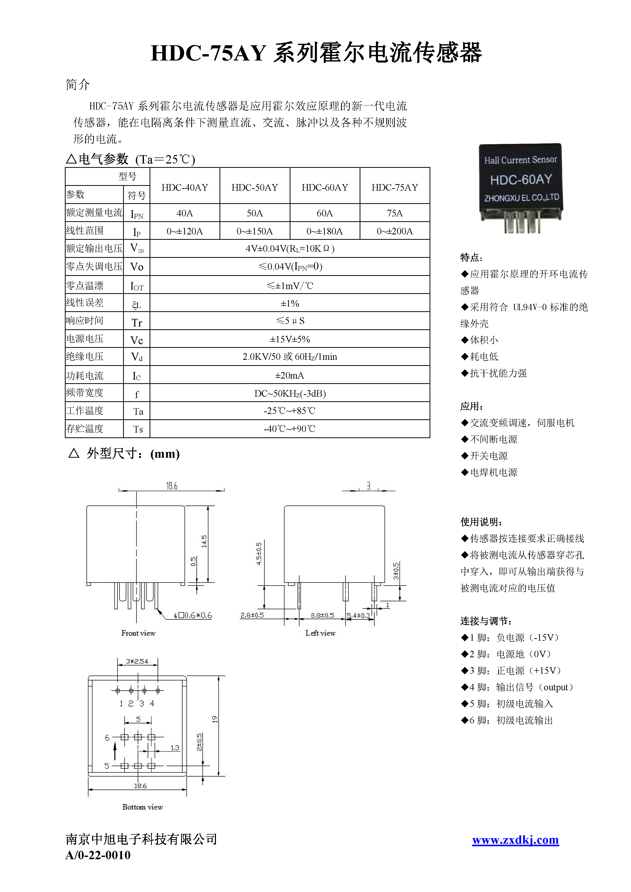 HDC-60AY系列霍爾電流傳感器是應(yīng)用霍爾效應(yīng)原理的新一代電流傳感器,能在電隔離條件下測量直流、交流、脈沖以及各種不規(guī)則波形的電流。